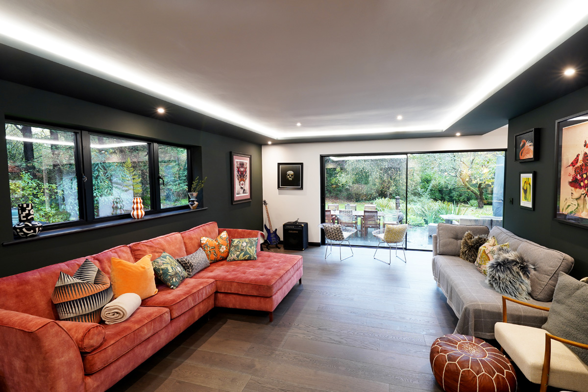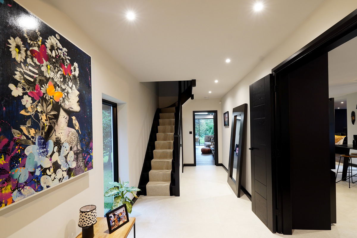 To enhance kerb appeal and functionality, we constructed a bold new front entrance, making a strong architectural statement. The existing garage was thoughtfully converted into a bespoke games room, significantly expanding the property’s usable space and adding lifestyle value.